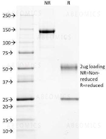 Fig. 1: SDS-PAGE Analysis Purified CD14 Mouse Monoclonal Antibody (LPSR/654). Confirmation of Integrity and Purity of Antibody.