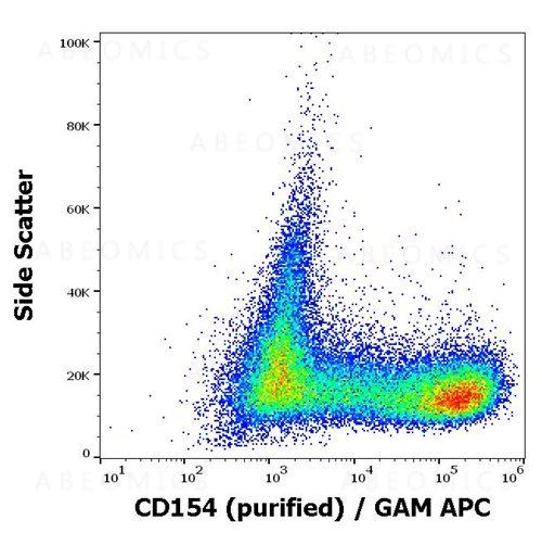 Figure 1: Flow cytometry surface staining pattern of human stimulated (PMA + ionomycin) peripheral blood mononuclear cells stained using anti-human CD154 (24-31) purified antibody GAM APC.