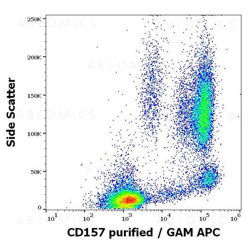 Figure 1: Flow cytometry surface staining pattern of human peripheral whole blood stained using anti-human CD157 (SY11B5) purified antibody (concentration in sample 4 μg/ml, GAM APC).