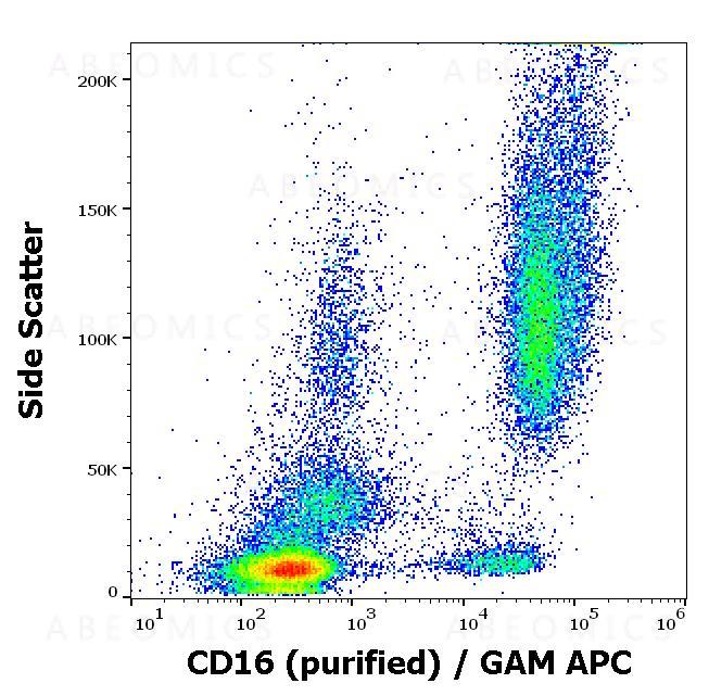 Figure 1: Flow cytometry surface staining pattern of human peripheral whole blood stained using anti-human CD16 (3G8) purified antibody (concentration in sample 2 μg/ml, GAM APC).