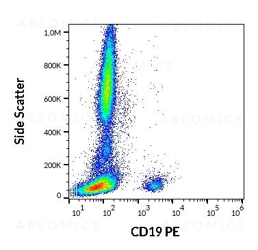 Figure 1: Flow cytometry surface staining pattern of human peripheral whole blood stained using anti-human CD19 (4G7) PE antibody (20 μl reagent / 100 μl of peripheral whole blood).