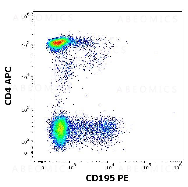 Figure 1:Flow cytometry surface staining pattern of human peripheral whole blood stained using anti-human CD195 (T21/8) PE antibody (concentration in sample 1 μg/ml).