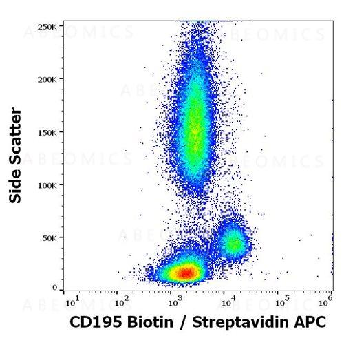 Figure 1: Flow cytometry surface staining pattern of human peripheral whole blood stained using anti-human CD195 (T21/8) biotin antibody (concentration in sample 5 μg/ml, Streptavidin APC).