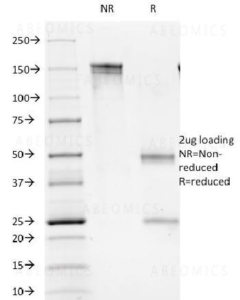 Fig. 1: SDS-PAGE Analysis Purified CD1b Mouse Monoclonal Antibody (100-1A5). Confirmation of Integrity and Purity of Antibody.