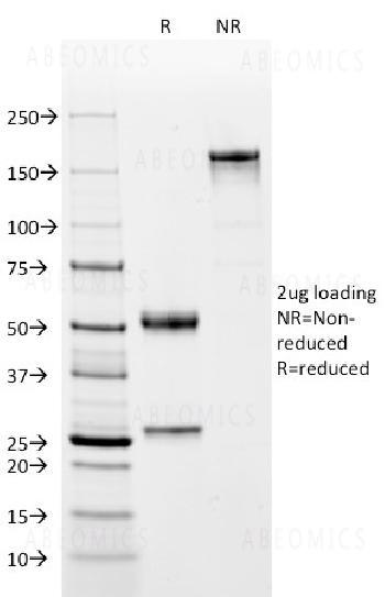 Fig. 1: SDS-PAGE Analysis Purified CD2 Mouse Monoclonal Antibody (BH1). Confirmation of Integrity and Purity of Antibody.