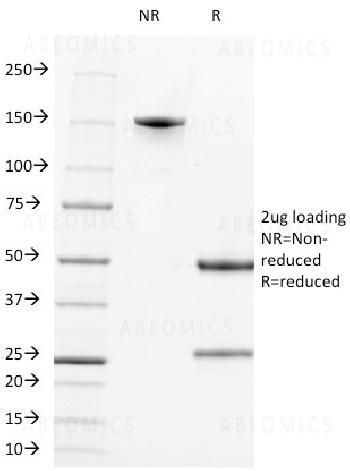 Fig. 1: SDS-PAGE Analysis Purified CD2 Mouse Monoclonal Antibody (LFA2/600). Confirmation of Integrity and Purity of Antibody.