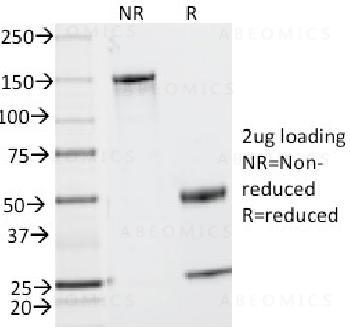 Fig. 1: SDS-PAGE Analysis Purified CD2 Mouse Monoclonal Antibody (UMCD2). Confirmation of Integrity and Purity of Antibody.