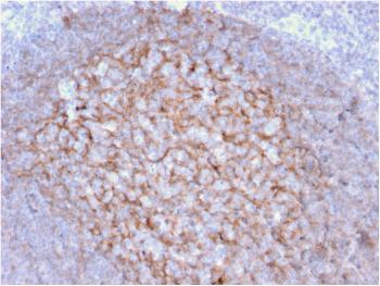 Fig. 1: Formalin-fixed, paraffin-embedded human Tonsil stained with CD21 / CR2 Mouse Monoclonal Antibody (CR2/1953).