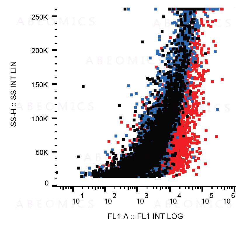 Figure 1: Surface staining of CD263-transfectants (red) using anti-CD263 (TRAIL-R3-02) FITC.