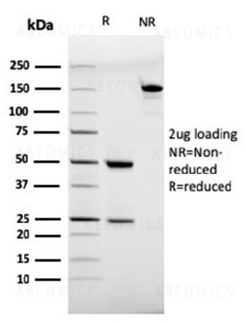 Fig. 1: SDS-PAGE Analysis Purified CD28 Mouse Monoclonal Antibody (C28/75). Confirmation of Integrity and Purity of Antibody.