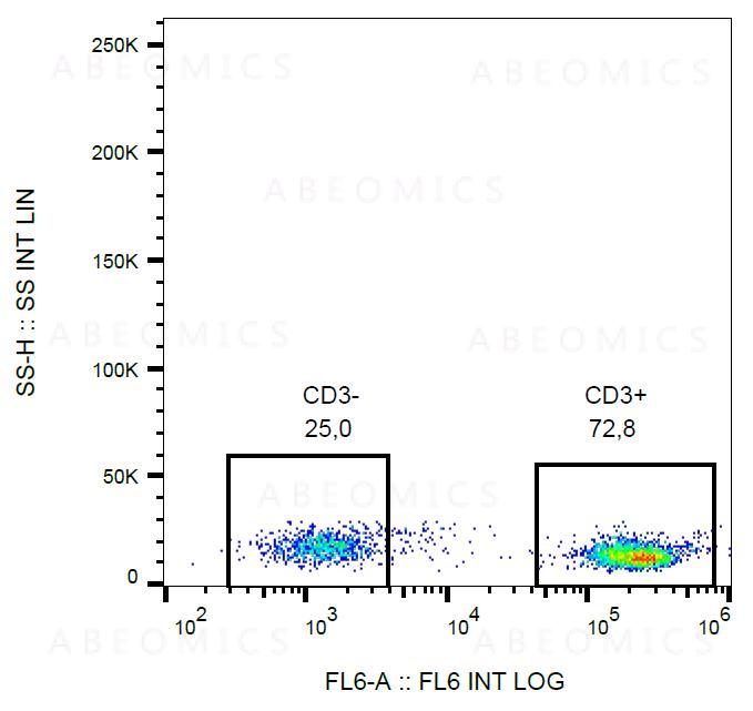 Figure 1: Surface staining of CD3 in human peripheral blood with anti-CD3 (MEM-57) biotin, streptavidin-APC.