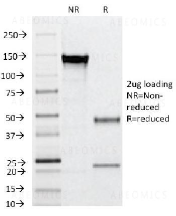 Fig. 1: SDS-PAGE Analysis Purified CD31 Mouse Monoclonal Antibody (C31.12). Confirmation of Integrity and Purity of Antibody.
