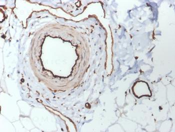 Fig. 1: Formalin-fixed, paraffin-embedded human skin stained with CD31 Mouse Monoclonal Antibody (PECAM1/3530).