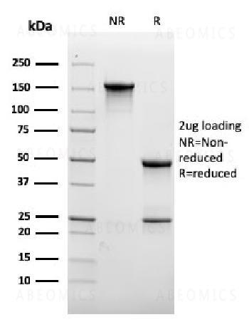 Fig. 1: SDS-PAGE Analysis Purified CD31 Recombinant Mouse Monoclonal Antibody (rC31.3). Confirmation of Purity and Integrity of Antibody.