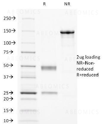 Fig. 1: SDS-PAGE Analysis Purified CD32 Mouse Monoclonal Antibody (8.7). Confirmation of Purity and Integrity of Antibody.