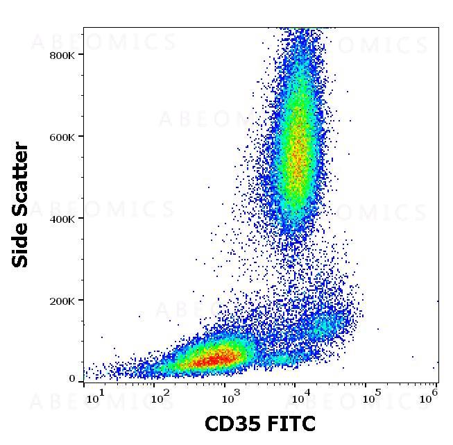 Figure 1: Flow cytometry surface staining pattern of human peripheral whole blood stained using anti-human CD35 FITC antibody.