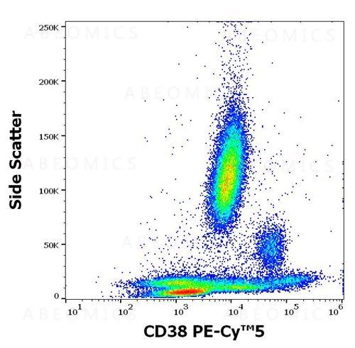 Figure 1: Flow cytometry surface staining pattern of human peripheral whole blood stained using anti-human CD38 (HIT2) PE-Cy™5 antibody (4 μl reagent / 100 μl of peripheral whole blood).
