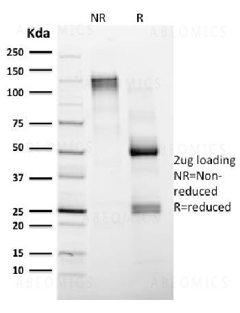 Fig. 1: SDS-PAGE Analysis Purified CD4 Mouse Monoclonal Antibody (CD4/1604). Confirmation of Integrity and Purity of Antibody.