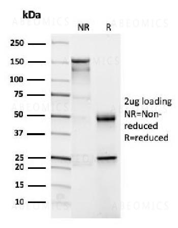 Fig. 1: SDS-PAGE Analysis Purified CD4 Mouse Monoclonal Antibody (CD4/3026). Confirmation of Integrity and Purity of Antibody.