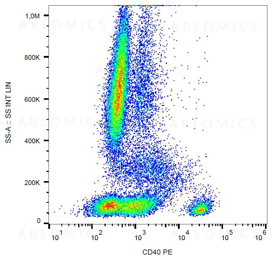 Figure 1: Surface staining of human peripheral blood cells with anti-human CD40 (HI40a) PE.