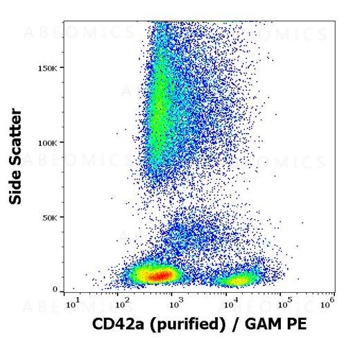 Figure 1: Flow cytometry surface staining pattern of human peripheral blood stained using anti-human CD42a (GR-P) purified antibody (concentration in sample 1 μg/ml) GAM PE.