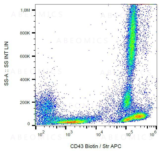 Figure 1: Surface staining of human peripheral blood with anti-CD43 (MEM-59) biotin / streptavidin-APC.