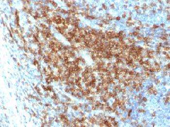 Figure 1: Formalin-fixed, paraffin-embedded human Tonsil stained with CD43 Rabbit Recombinant Monoclonal Antibody (SPN/2049R).