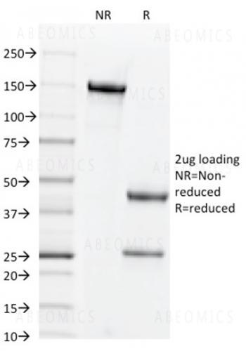 Fig. 1: SDS-PAGE Analysis Purified CD44v4 Mouse Monoclonal Antibody (2F10). Confirmation of Purity and Integrity of Antibody.