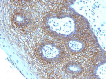 Fig. 1: Formalin-fixed, paraffin-embedded human Cervical Squamous Cell Carcinoma stained with CD44v4 Mouse Monoclonal Antibody (CD44v4/1219)