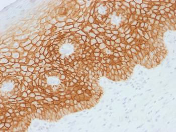 Fig. 1: Formalin-fixed, paraffin-embedded human Cervical Squamous Cell Carcinoma stained with CD44v4 Rabbit Polyclonal Antibody.