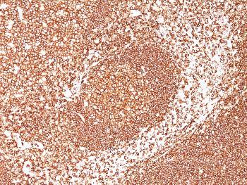 Fig. 1: Formalin-fixed, paraffin-embedded human Tonsil stained with CD45 Mouse Monoclonal Antibody (2B11+PD7/26).