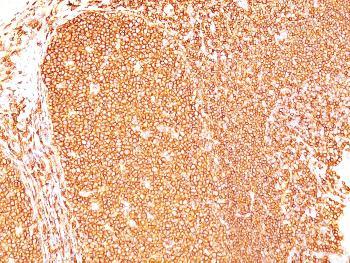Fig. 1: Formalin-fixed, paraffin-embedded human Tonsil stained with CD45 Mouse Monoclonal Antibody (Bra55).