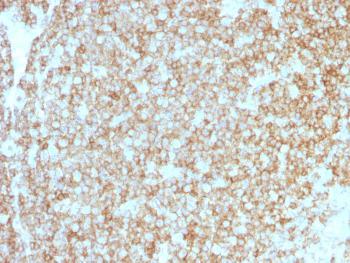 Fig. 1: Formalin-fixed, paraffin-embedded human Tonsil stained with CD45 Recombinant Rabbit Monoclonal Antibody (PTPRC/1783R + PTPRC/1975R).