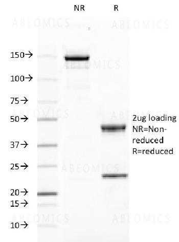 Fig. 1: SDS-PAGE Analysis Purified CD46 Mouse Monoclonal Antibody (169-1-E4.3). Confirmation of Integrity and Purity of Antibody