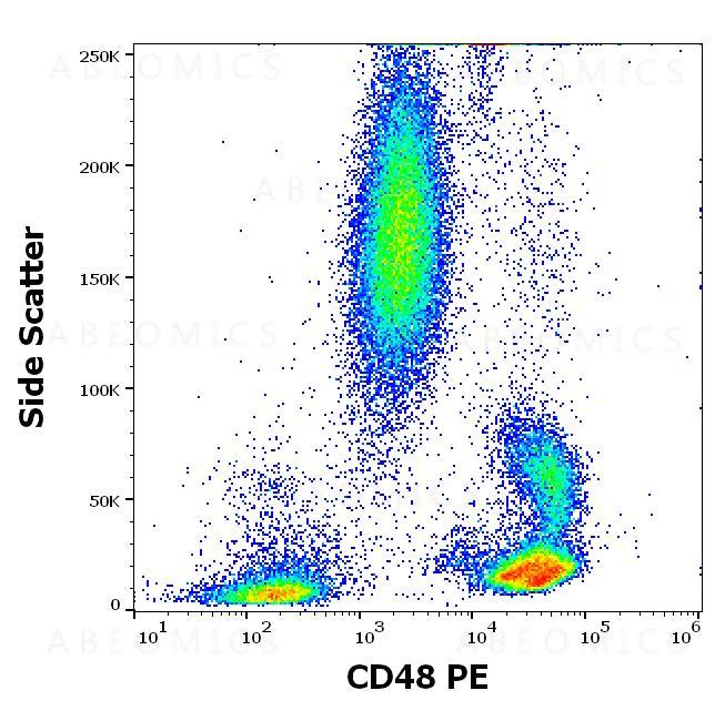 Figure 1: Flow cytometry surface staining pattern of human peripheral whole blood stained using anti-human CD48 (MEM-102) PE antibody (20 μl reagent / 100 μl of peripheral whole blood).