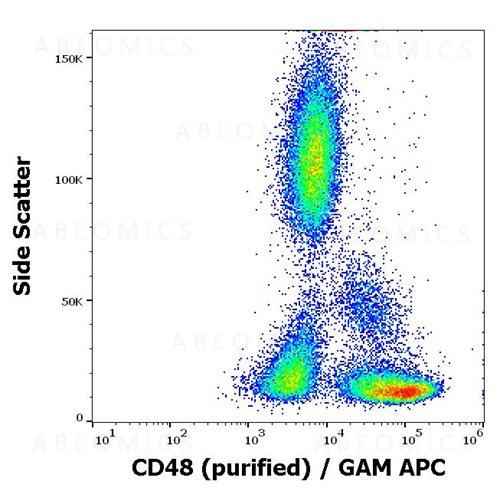 Fig. 1: Flow cytometry surface staining pattern of human peripheral whole blood stained using anti-human CD48 (MEM-102) purified antibody (concentration in sample 3 μg/ml, Goat anti-Mouse APC).