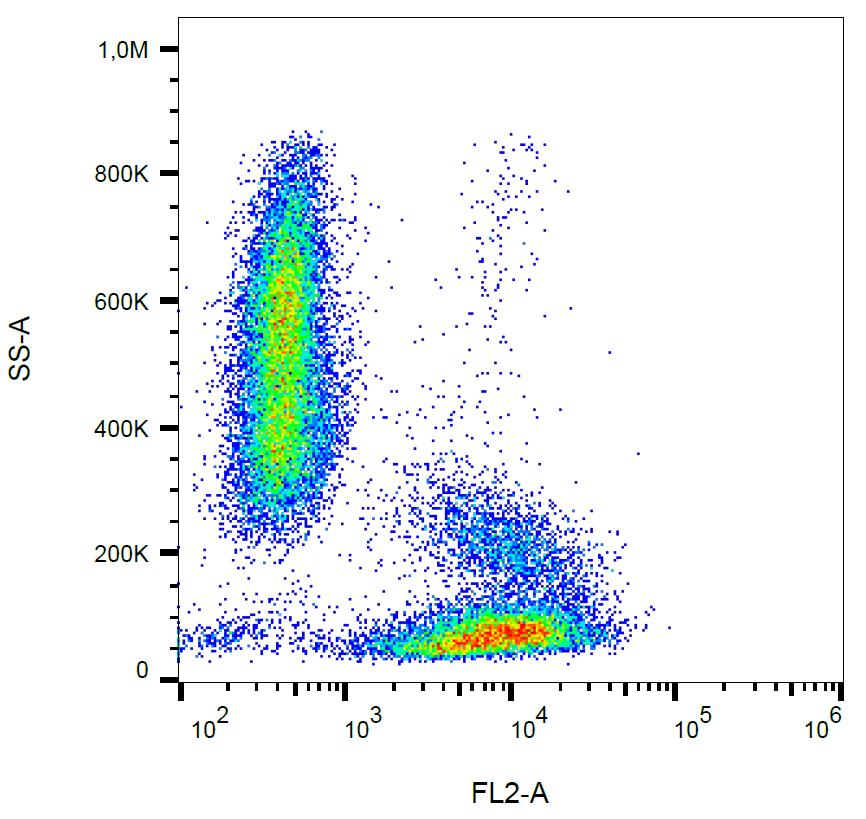 Figure 1: Surface staining of CD49d in human peripheral blood leukocytes with anti-CD49d (9F10) PE.