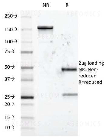 Fig. 1: SDS-PAGE Analysis Purified CD5 Mouse Monoclonal Antibody (Clone B-B8). Confirmation of Integrity and Purity of Antibody.