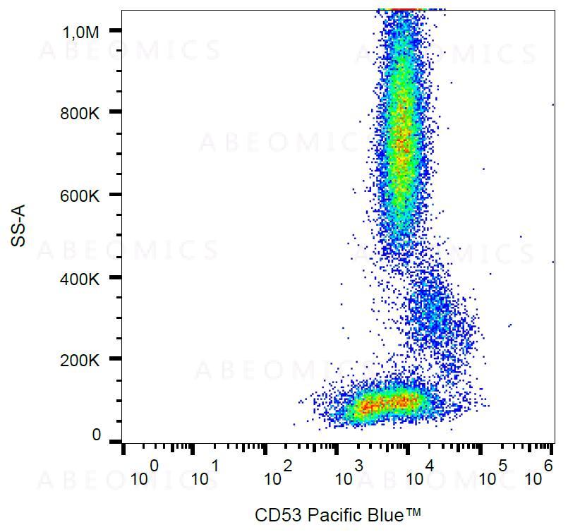 Figure 1: Surface staining of CD53 in human peripheral blood cells with anti-CD53 (MEM-53) PE.