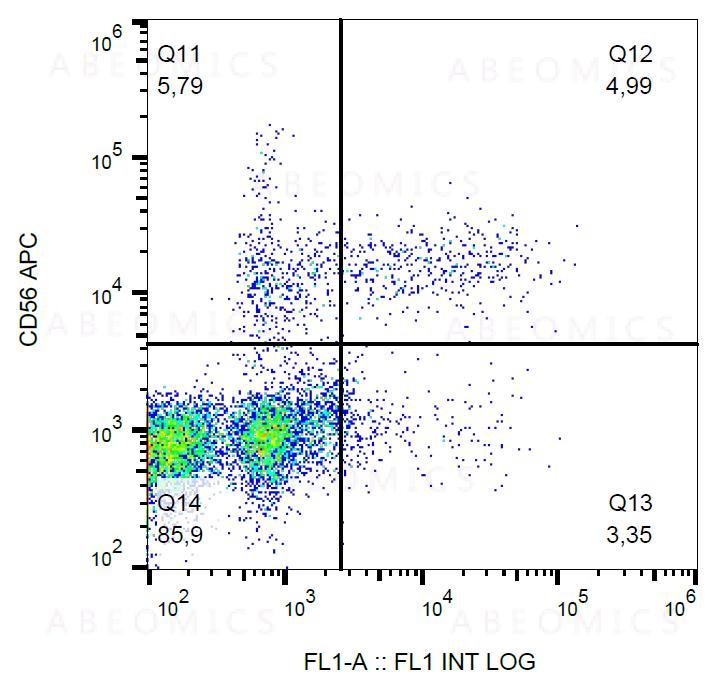 Figure 1: Surface staining of human peripheral blood with anti-human CD57 (TB01) FITC.