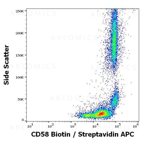 Figure 1: Flow cytometry surface staining pattern of human peripheral whole blood stained using anti-human CD58 (MEM-63) Biotin antibody (concentration in sample 1.67 μg/ml, Streptavidin APC).