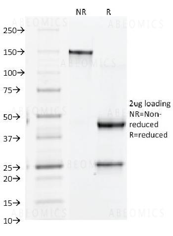 Fig. 1: SDS-PAGE Analysis Purified CD61 Monoclonal Antibody (Y2/51). Confirmation of Purity and Integrity of Antibody.