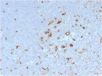 Fig. 1: Formalin-fixed, paraffin-embedded human Tonsil stained with CD68 Rabbit Recombinant Monoclonal Antibody (C68/2908R).
