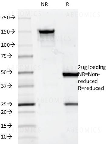 Fig. 1: SDS-PAGE Analysis Purified CD7 Mouse Monoclonal Antibody (124-1D1). Confirmation of Integrity and Purity of Antibody.