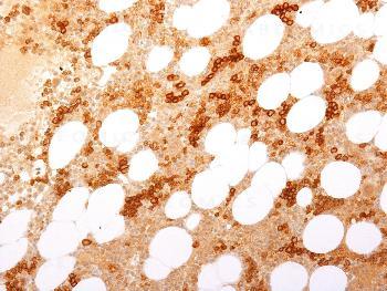 Fig. 1: Formalin-fixed, paraffin-embedded Human Bone Marrow stained with CD71 Rabbit Recombinant Monoclonal Antibody (TFRC/2898R).