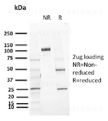 Fig. 1: SDS-PAGE Analysis Purified CD72 Mouse Monoclonal Antibody (BU40). Confirmation of Purity and Integrity of Antibody.