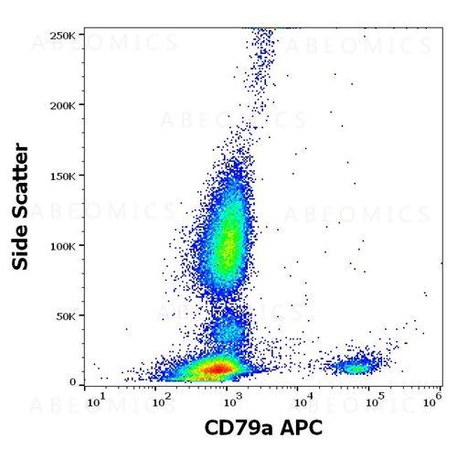 Figure 1: Flow cytometry intracellular staining pattern of human peripheral whole blood stained using anti-human CD79a (HM47) APC antibody (concentration in sample 1 μg/ml).