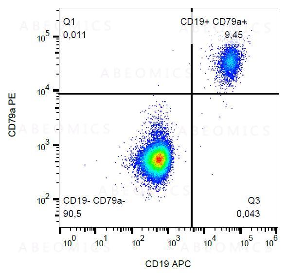 Figure 1: Intracellular staining of CD79a in human peripheral blood with anti-CD79a (HM57) PE.