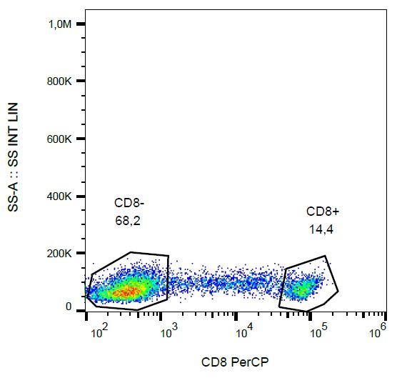 Figure 1: Surface staining of human peripheral blood using anti-human CD8 (clone MEM-31) PerCP.