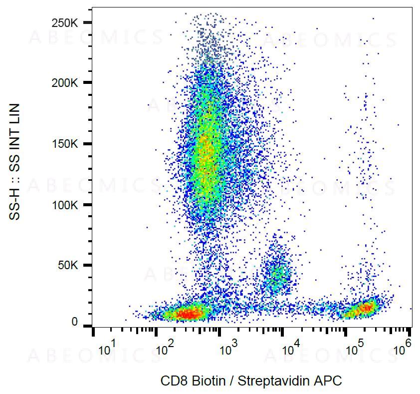 Figure 1: Surface staining of human peripheral blood using anti-human CD8 (clone MEM-31) biotin.